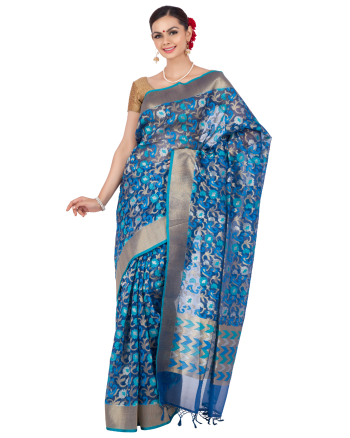 Blue organza saree