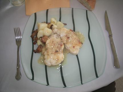 Peixe Sapo com salsa de ribeiro e pataquinhas com hongos