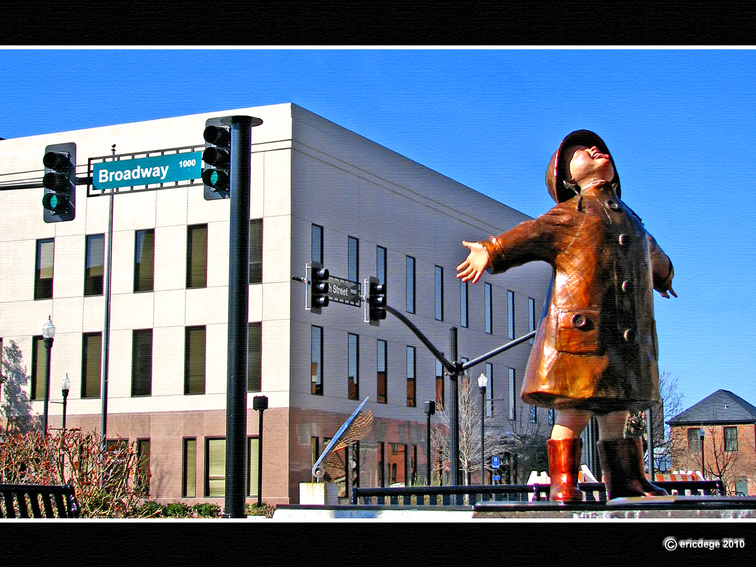 ..There are a number of these bronze statues downtown on Broadway (and other places around town) ..This is one of my favorites ..Located at an awkward intersection, I had to Photoshop out some distractions