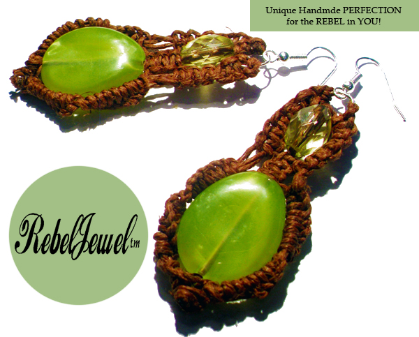 Razzle Dazzle With Rebel Jewel ~ Experimental Macramé Designs ~ ~Brown hemp with green beads By RebelJewel.