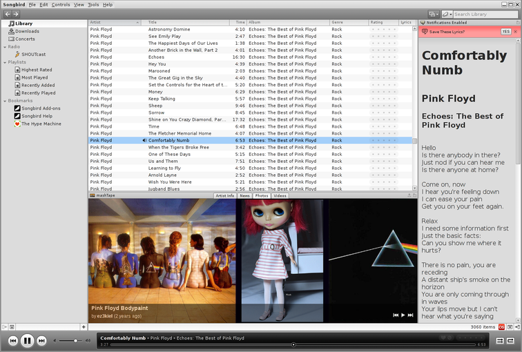 Songbird: list view and slideshow