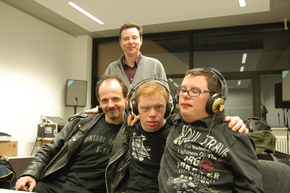 Das Interview zu Sendungsbeginn: Reinhold Giovanett, Thomas Mahlknecht (Tontechnik), Günther Profanter und Julian Messner.
