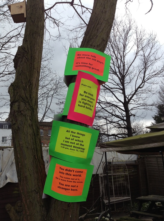 The Tree is a one year project, alternating weekly between Russell Higgs the odd numbered weeks and cAt Monstersmith the even. The project began 20th Nov 2012 and the tree is located at Hackney City Farm, London. |