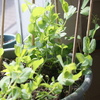 玫瑰插枝: 15cm 長分支點下方斜切45度。每枝留頂葉。放在戶外,一隻用半透明豆漿瓶罩住保持溼度. 另一隻則開放空間對照。沒有用植物激素