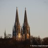 Regensburg in der Abendsonne vom Dreifaltigkeitsberg aus gesehen, am Weihnachtsabend, 24.12.2015