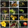 Collage von Blumenfotos im Garten.