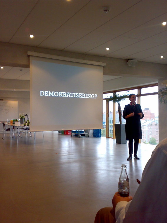 Trine-Maria giving her presentation on the democratic possibilites of the web.