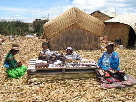 Uroindianderne lever af fiskeri kombineret med indtægter fra os turister. Denne kvinde viser mig forskellige smykker og tasker, hun har lavet, og peger derefter på nogle miniaturesivbåde. "Det er mandearbejde", griner hun.