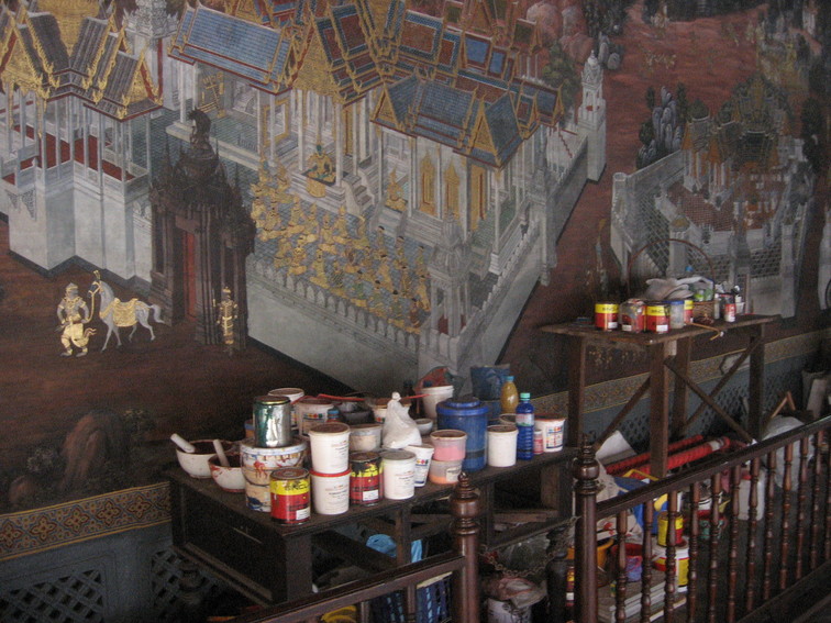 ![]() Part of the mural being retouched.