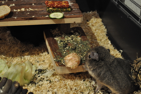 Viva smells the cucumber. |