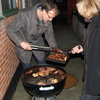 Ulla, Birgit og Anette er mætte efter hovedretten: grillstegt kanin med rodfrugtmos og rødkålssalat.