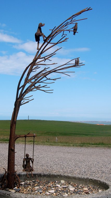 Udenfor fyrboligen stod dette vindblæste metaltræ.